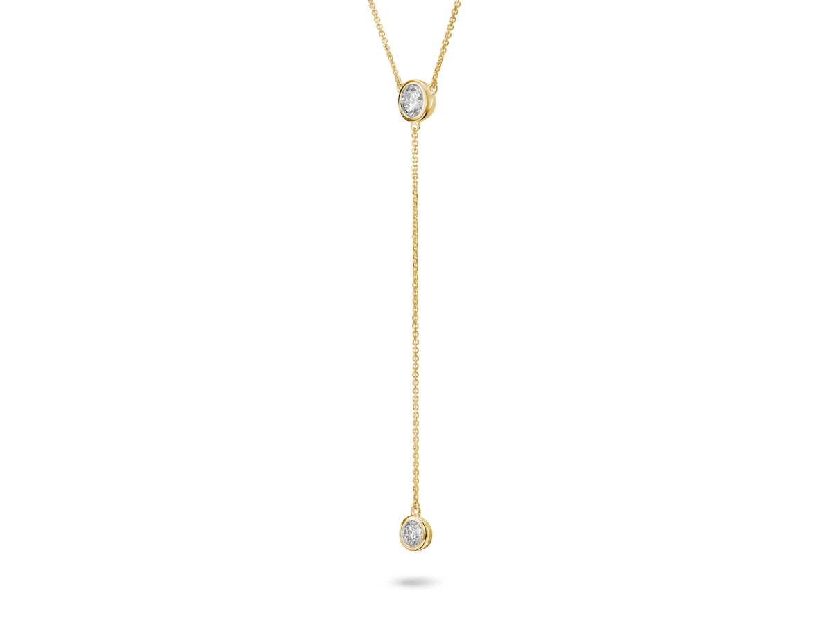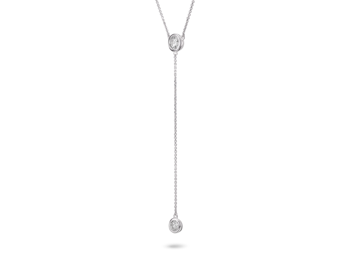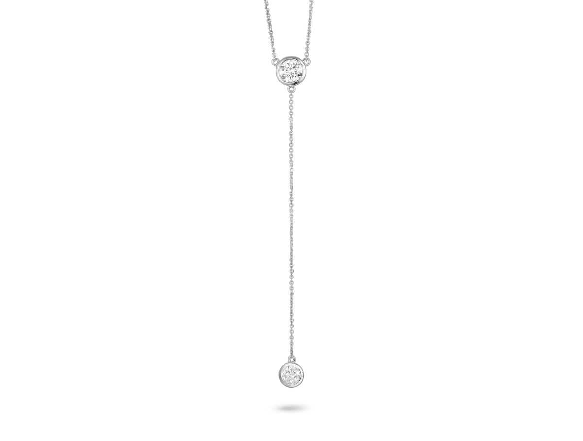 Lab-Grown Diamond ¾ct. tw. Round Brilliant Bezel Lariat Pendant | White - White / 14k White Gold